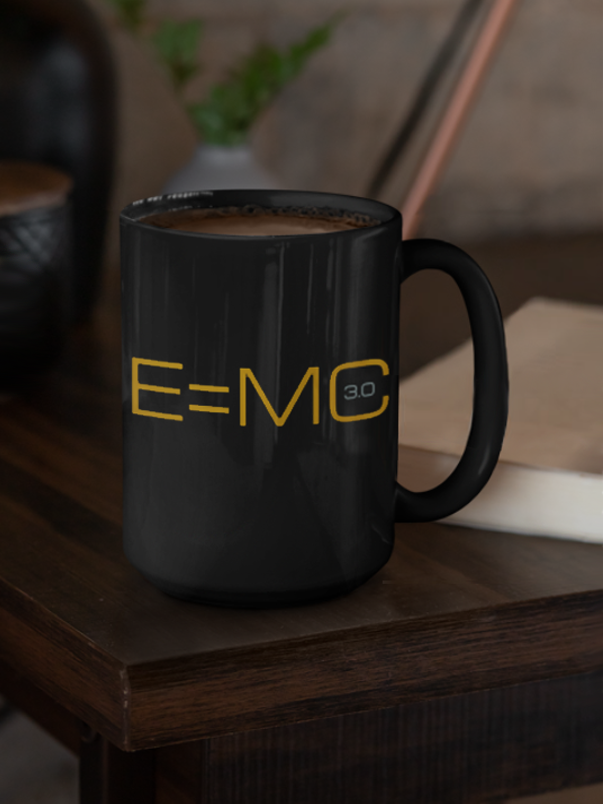 Tazón cerámico color negro y estampado recubierto marca EMindset 3.0, tamaño grande 15 Oz. (11.5 cm. de alto x 8.6 cm. de diámetro e impresión: 21.8 cm. x 9.4 cm.)